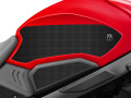 「P&A タンクグリップ BLOQ Premium」 : パッド表面に施されたきめ細かなグリッド状のエンボス加工が適度な摩擦力を発生させます。グリップ性能を持たせつつも、車体上で姿勢を変える際には妨げになりません。