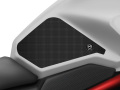 「P&A タンクグリップ BLOQ Premium」 : パッド表面に施されたきめ細かなグリッド状のエンボス加工が適度な摩擦力を発生させます。グリップ性能を持たせつつも、車体上で姿勢を変える際には妨げになりません。