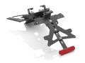 rizoma製フェンダーレスキット。各国のナンバープレートサイズに対応するライセンスプレートホルダー。LEDのナンバープレート照明も付属。プレートの保持位置や角度、リアウィンカーの取り付けなどが調整でき、満足のいく仕様となっています。