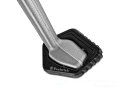 サイドスタンドエンドの接地面積を広くして安定した駐車を可能にします。サイドスタンドで駐車する場合、特に重量が極端に増える積載をしたときは車輌が約250kgから350kgになり、通常のサイドスタンドエンドの接地面ではアスファルト、砂利、柔らかな地面などに沈み込む恐れがあります。接地面積を増やし不安定な駐車状況を改善します。