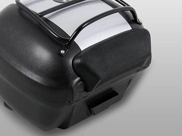 トップケースに取り付けるバックレストクッション。これを取り付ければ、トップケースがタンデムライダーの背もたれとしてご利用できます。