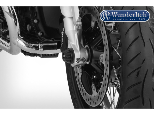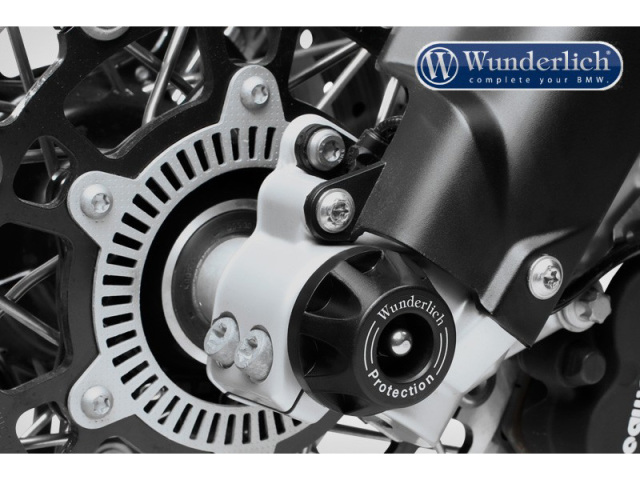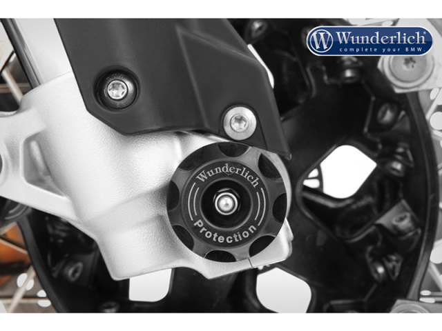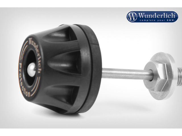 万が一の転倒時に車体をスライドさせ、車体へのダメージを軽減。ブレーキキャリバーなどを守るプロテクターとなります。フロントアクスルに設置します。