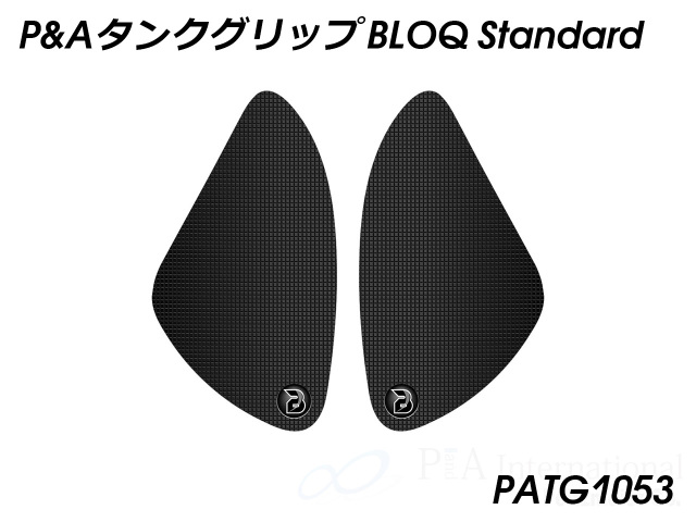 「P&A タンクグリップ BLOQ EXTREME」 : 厚みのあるパッドに突起状の滑り止めが施されています。非常に高いグリップ性能を持ち、高いホールド性と抜群のコントロールをもたらします。レース水準にも応える性能を発揮します。