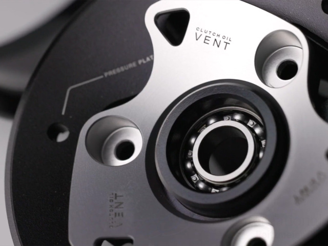軽量アルミニウムのプレッシャープレートとプレッシャーリングで構成されるクラッチベントシステムは、カバー内のクラッチオイルの循環を最大限に最適化するよう設計。